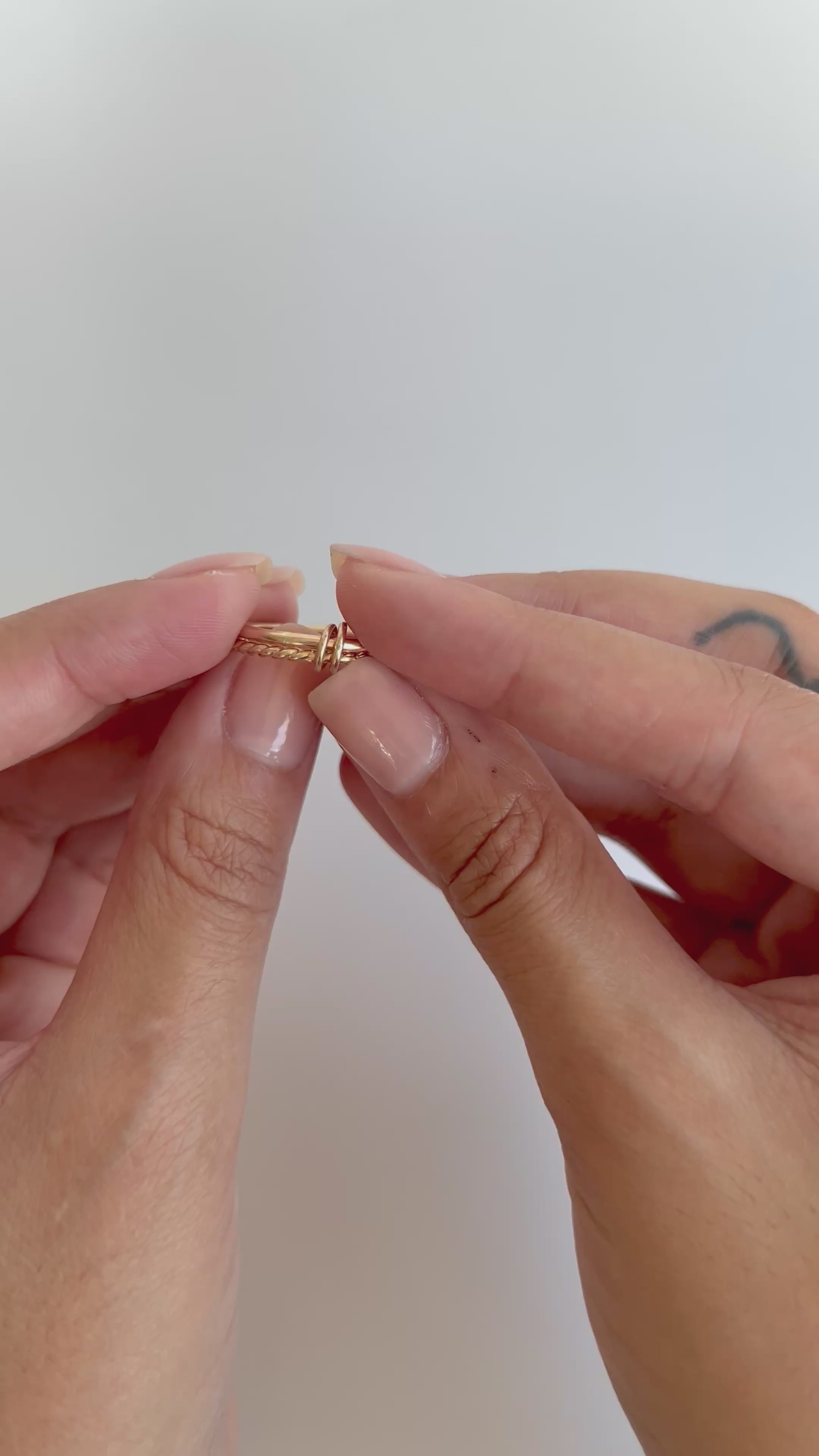 Le fil torsadé sophistiqué et les disques mobiles faits main apportent une touche d'originalité à ce modèle ! Les deux anneaux se séparent pour former un nouvel objet anti-stress, et peuvent même être portés à des doigts différents simultanément. Faites pivoter les disques verticalement et tournez-les le long des anneaux pour apaiser vos angoisses. Côté métal, choisissez entre l'or massif et l'argent, ou affirmez votre style unique avec un mélange or/argent. Cette bague anti-stress est particulièrement agréable à porter à la main opposée. Chaque bague est présentée sur une carte à bijoux, délicatement montée sur un fil à broder.